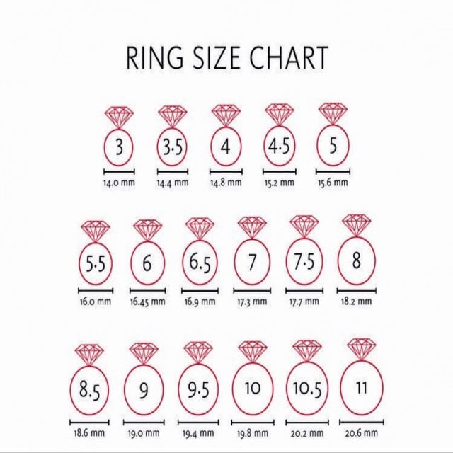 جدول مقاسات الخواتم بالسنتيمتر المرسال