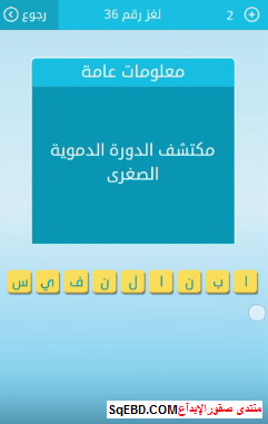 حل لغز مكتشف الدورة الدموية الصغرى من لعبة رشفة لغز رقم 36 للمجموعة الرابعة صقور الإبدآع