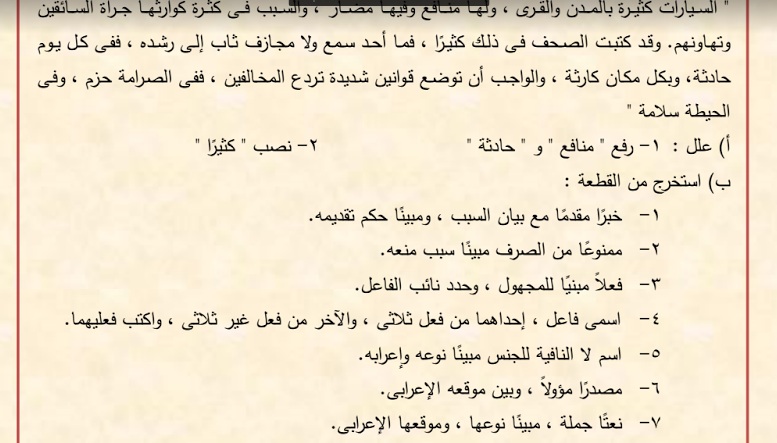 المراجعة النهائية واسئلة ليلة الامتحان لمادة اللغة العربية الصف الثالث الثانوي النحو النصوص القراءة التعبير القصة