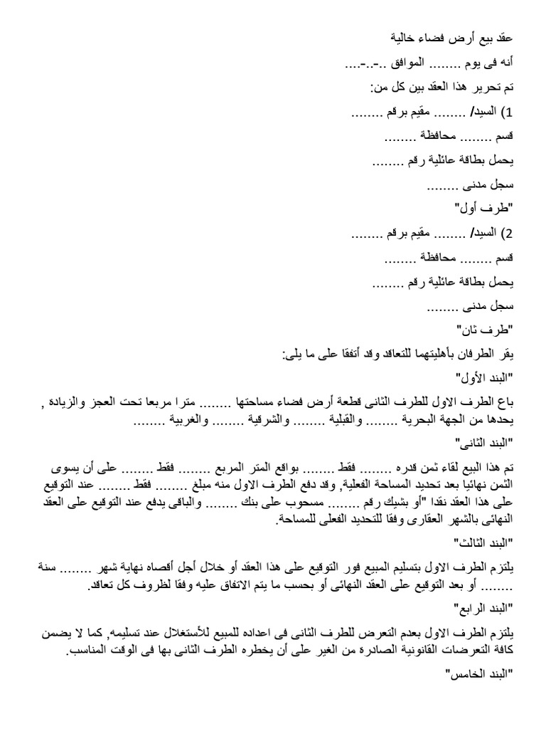 صيغة و نموذج عقد بيع أرض فضاء استشارات قانونية مجانية