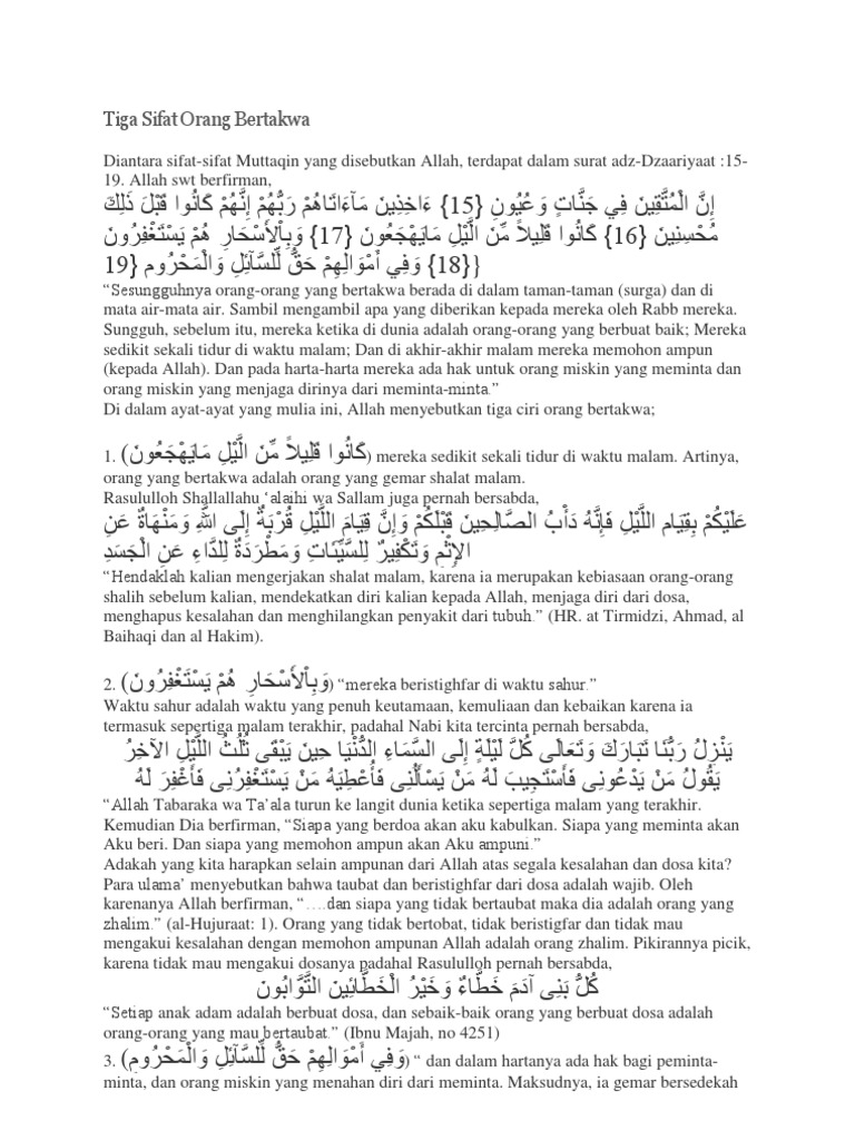 Tiga Sifat Orang Bertakwa