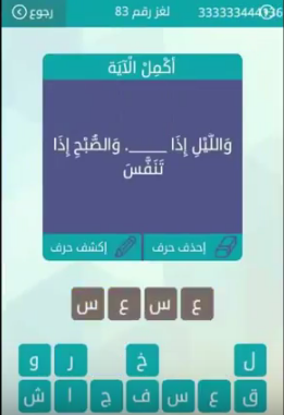 حل لغز والليل اذا والصبح اذا تنفس لغز رقم 83 من لعبة وصلة للمجموعة العاشرة صقور الإبدآع